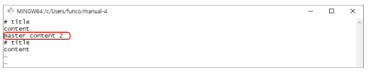 상황 : 지역 저장소 안에서, 다른 branch이지만 같은 txt파일의 빨간 테두리 공간에 다른 코드를 적고 merge 하려고 하는 상황입니다.